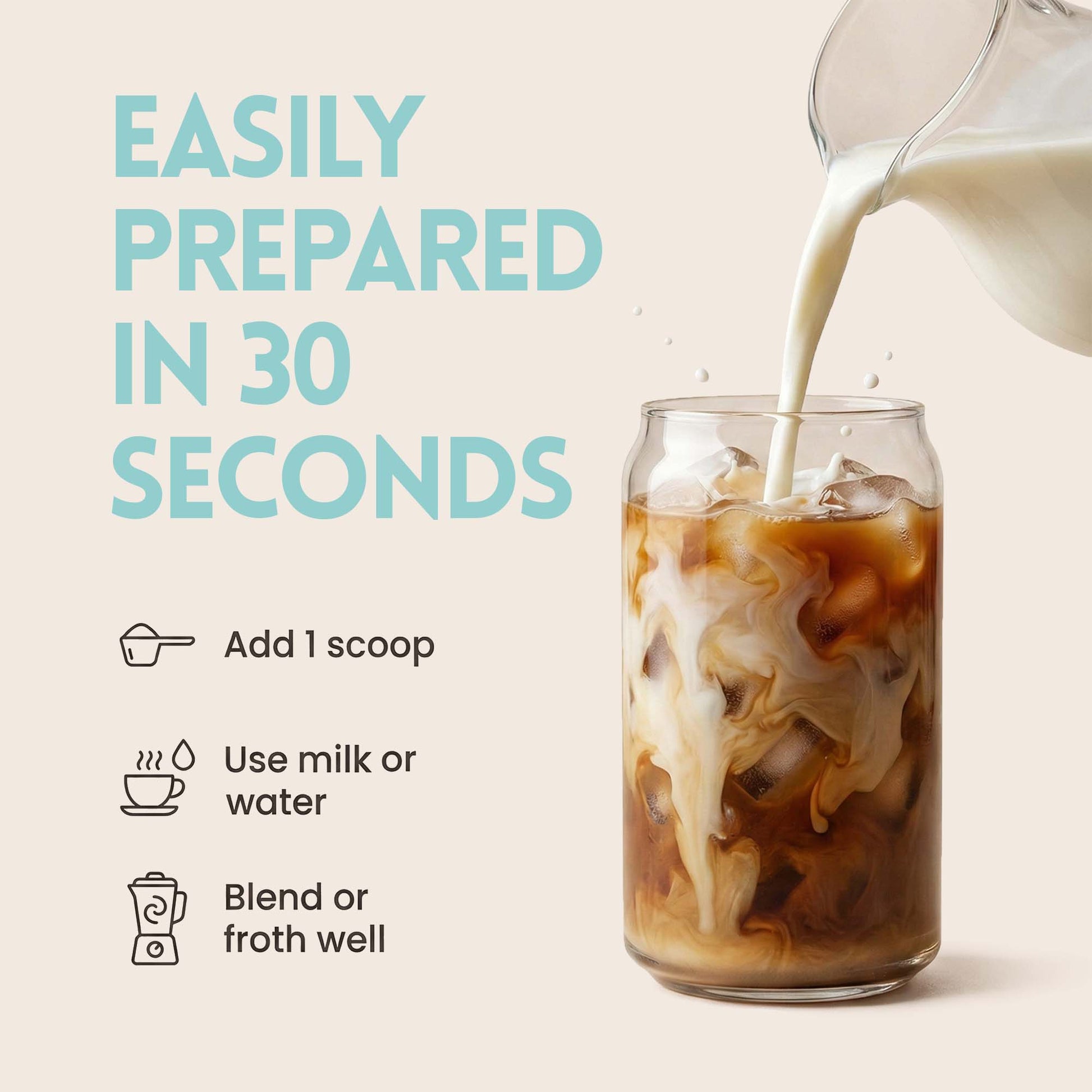 ngredients: *Cacao, *Oat Milk (Oats, Enzymes),*Coconut Milk (Coconut Milk, Tapioca Starch,Acacia Fiber), *Cordyceps Militaris MushroomExtract, *Lion's Mane Mushroom Extract, *Chaga mushroom Extract, *Turkey Tail Mushroom Extract,*Cinnamon, *Ginger, *Cloves, *Nutmeg, *Monk Fruit, Himalayan Pink Salt